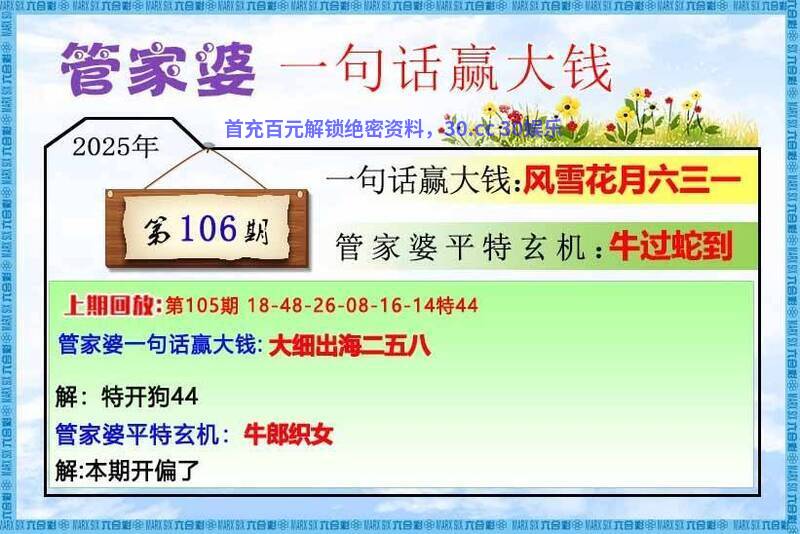 106期:天地中特╠天的生肖╣开:猪43准 |